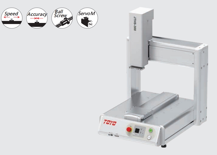 TOYOkaiyun开云电竞桌上型机械手高精度、使用方便、结合专业开发之TOYOFSE软件做点胶机功能,使点胶涂布功能更加丰富。内建CAD转路径功能,可使教导更快,搭配CCD和Laser可以进行XYZ坐标补正,可做到路径的位置连续补偿。可应用于点胶、銲